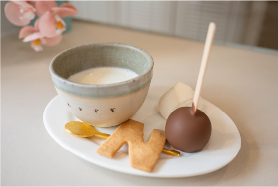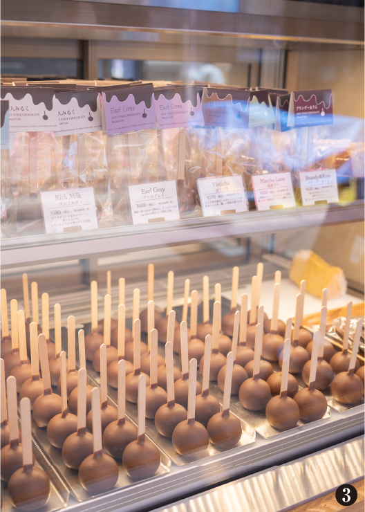 SNSやメディアでも多く取り上げられているホットミルクに溶かしながら食べるホットスティックチョコレートのお店。ショーケースに並ぶ美味しそうなチョコレートと様々なデザートたちを見ていると思わず、買いたくなります。