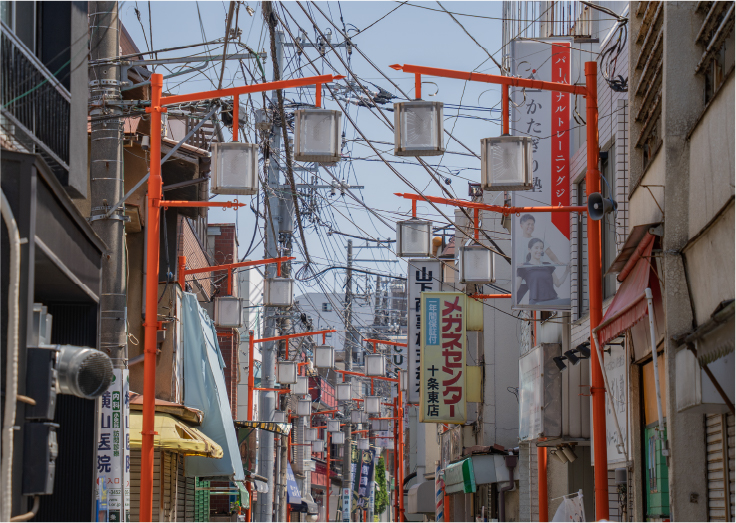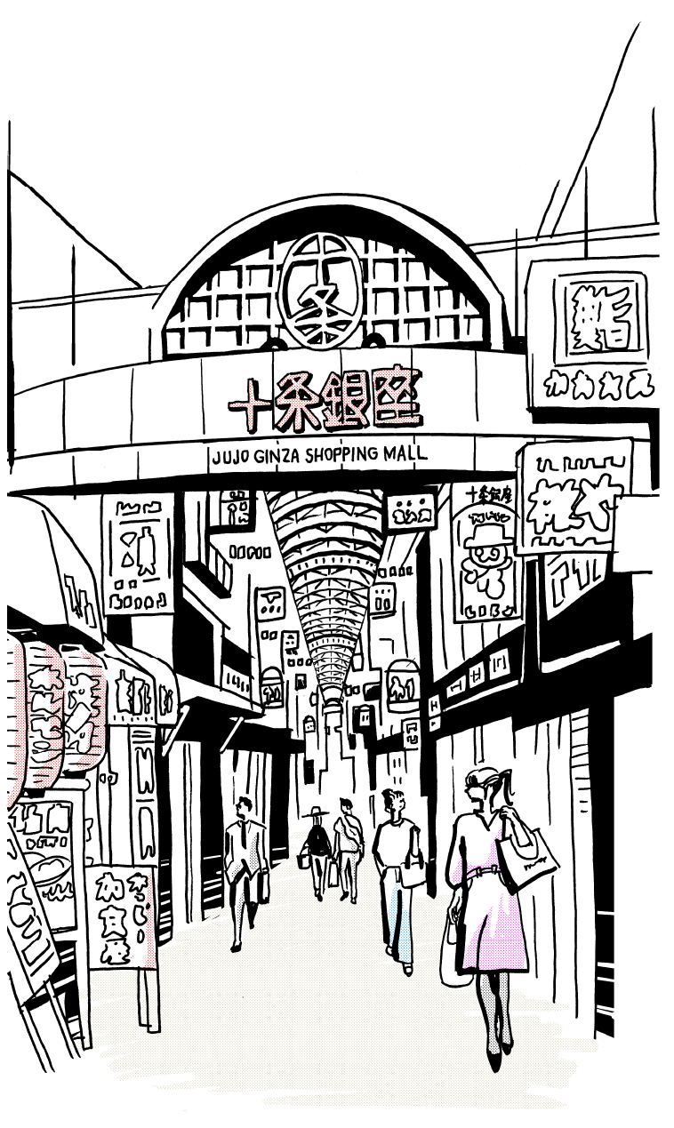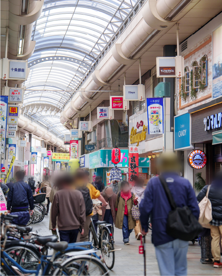北区最大・全長約375mのアーケードが広がり、雨の日でも濡れずにお買い物が楽しめます。昭和レトロの寛ぎに満ちた飲食店やこだわりのグルメなど、バラエティ豊かな店舗が集います。焼き鳥やコロッケなど、リーズナブルで美味しい惣菜類などでも有名です。