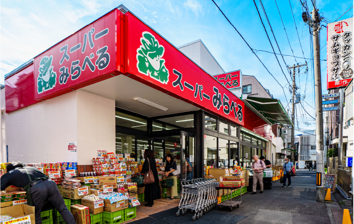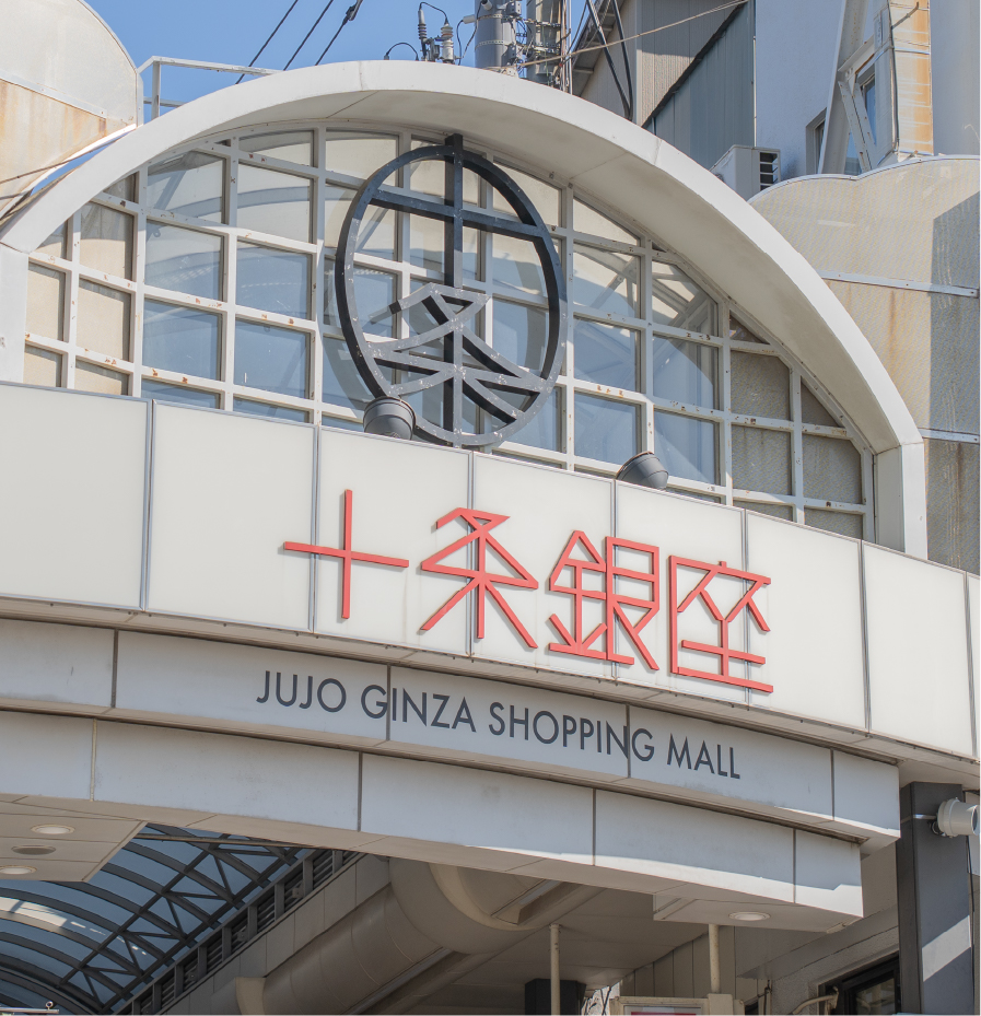 JR「十条」駅とJR「東十条」駅のセンターポジション。東京三大銀座商店街のひとつである「十条銀座商店街」をはじめ、魅力あふれる6つの商店街・385店舗※1をふだん使いできる便利で楽しさに満ちた立地です。
