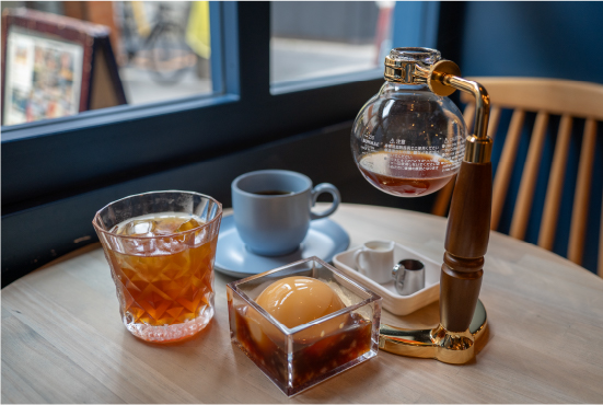 十条仲通り商店会にあるスペシャルティコーヒーとプリンのお店。ジャズ調の音楽が静かに流れる店内では、看板メニューのシン・プリンを注文する人も多い。サイフォン式で淹れるコーヒーの香りに包まれながら、ゆったり読書も楽しいくつろぎの空間です。