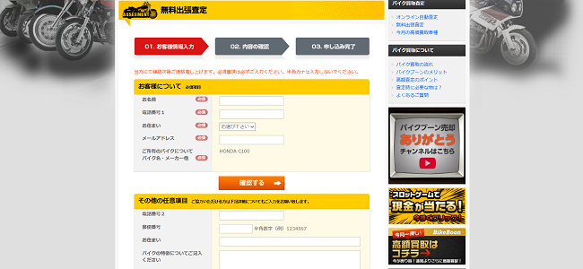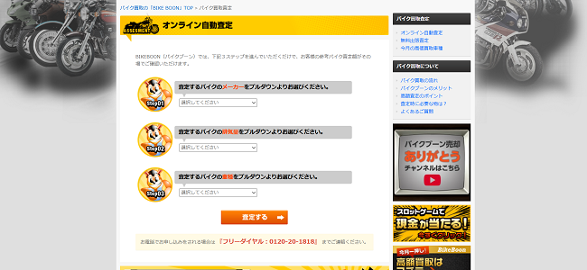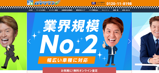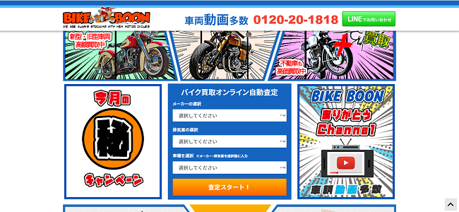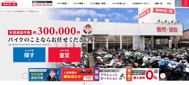 カスタム車のほか事故車、古いバイクも査定対象で、動かない場合でも無料で引き取ってもらえます。