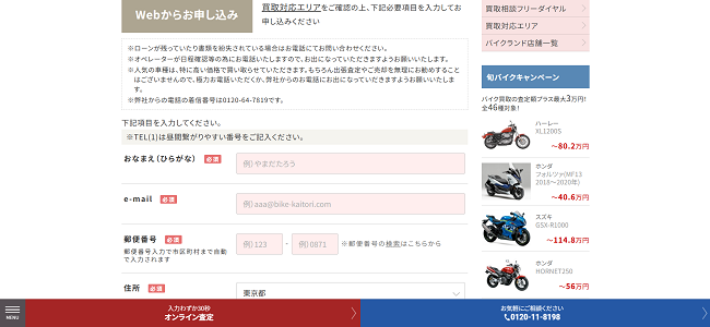 買取対応エリアによっては即日対応をしてもらえるので、バイクの売却を急いでいる人にもおすすめです。