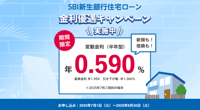 SBIマネープラザ(銀行代理業者)「SBI新生銀行住宅ローン」SBIマネープラザ 年0.590%