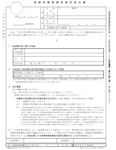 初めて制度を利用する年には、「相続時精算課税選択届出書」も合わせて提出する必要があります。