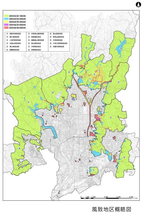 京都市内では、風致景観の保全から自然的な環境も重視され風致地区内が設定されています。