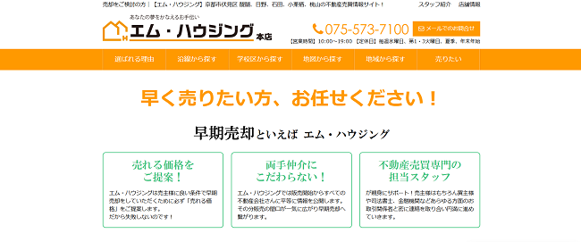 株式会社エム・ハウジングは、伏見区・宇治市エリアを中心に活動する地域密着型の不動産会社です。