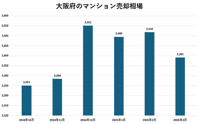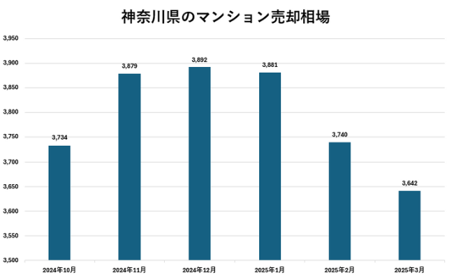 マンションの売却相場は時期やエリアによっても異なりますが、2025年3月時点の価格相場(成約価格)の平均は下記の通りです。