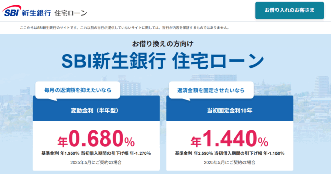 1. 【借り換え1位】SBI新生銀行住宅ローン