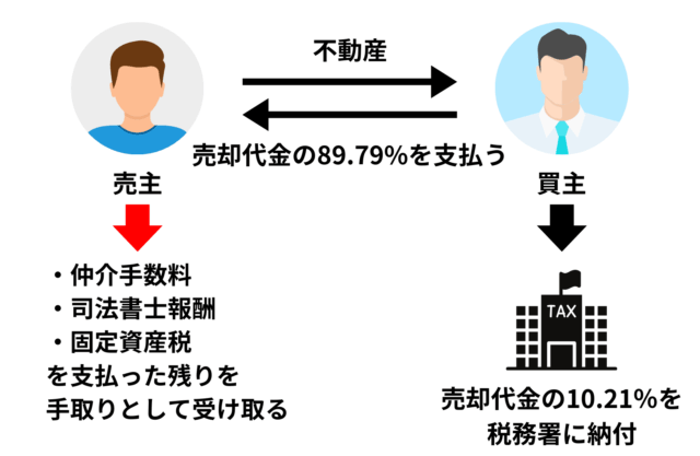 買主は売却代金の10.21%が源泉徴収として差し引かれます。