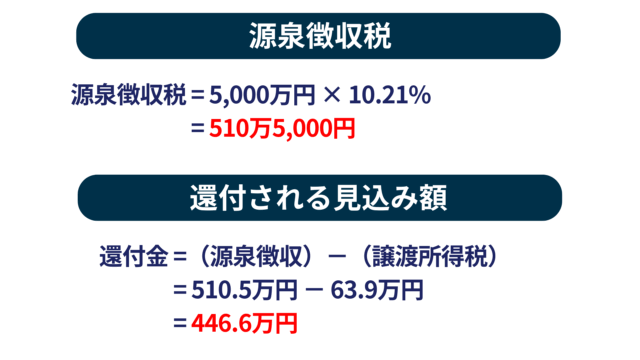 譲渡所得税の金額に応じて、還付される金額が少なくなります