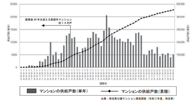 このうち、建築後40年を超える高経年マンションは約7.9万戸であり、県内のマンションストックの6分の1を占めています。