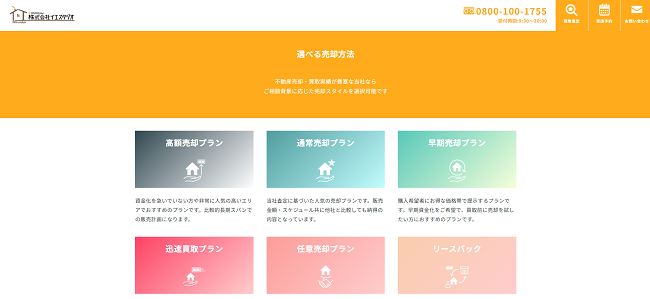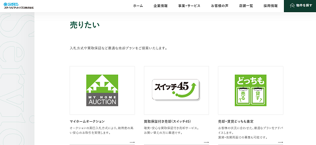 仲介売却、買取、買取保証など、提示できる売却方法の多さや売却前・売却後のサポート(建物検査、税務や権利関係等に関する相談、売却後の保証など)の充実度なども大きな特徴です。