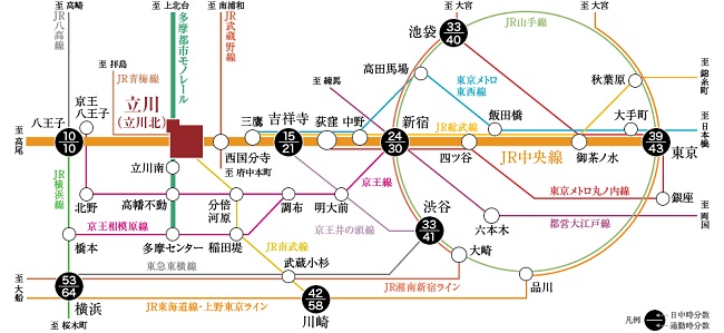 ○JR中央線は沿線の各駅から多数の路線にリンクしており、首都圏の主要駅へアクセス可能。