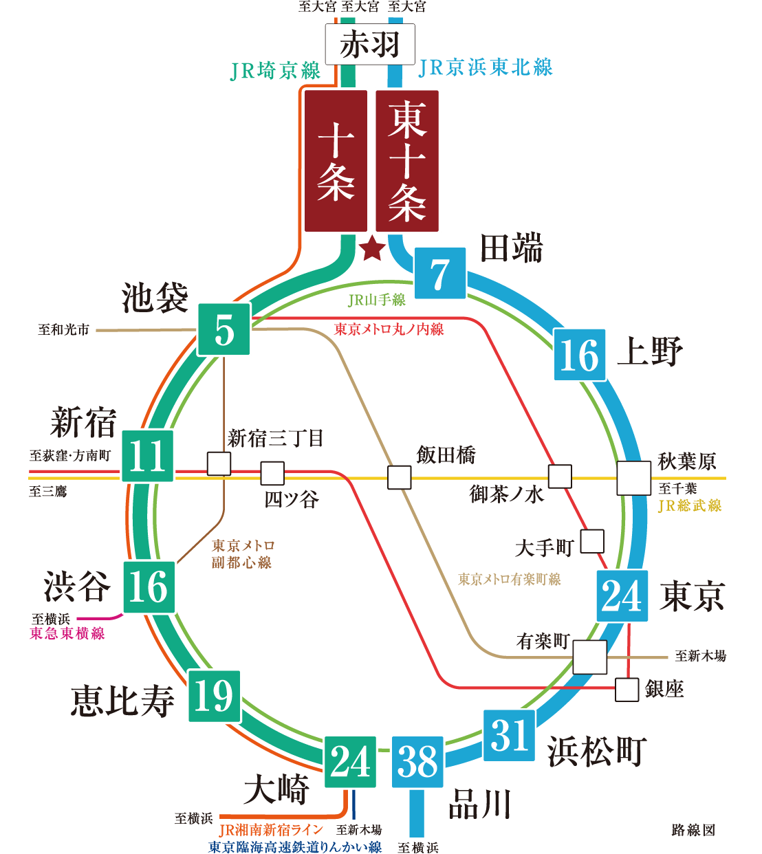 ○JR京浜東北線利用で都心主要駅「上野」駅、「東京」駅、「品川」駅へもダイレクトアクセス可能。